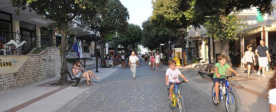 La bellezza del mare, la spiaggia sabbiosa accogliente e vivace, spazi verdi e pedonali.